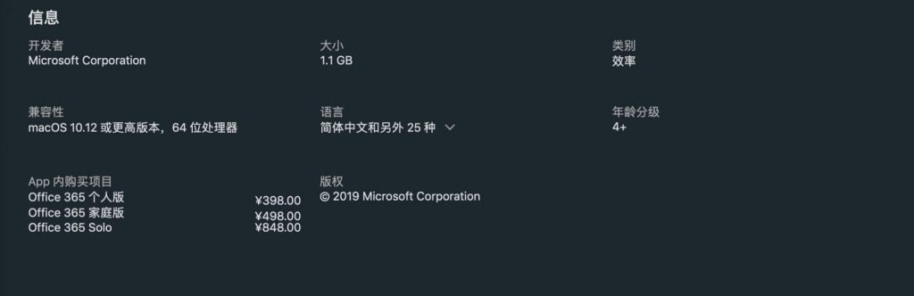 现已不限设备数量的 Office 365 Solo 价格在 Mac App Store 以人民币显现为 848 元/年,不过这项计划在我国应该没有供给。