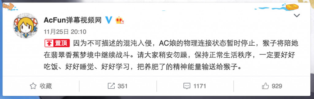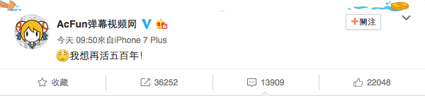 AcFun 又不能访问了,官方微博称“想再活五百年”