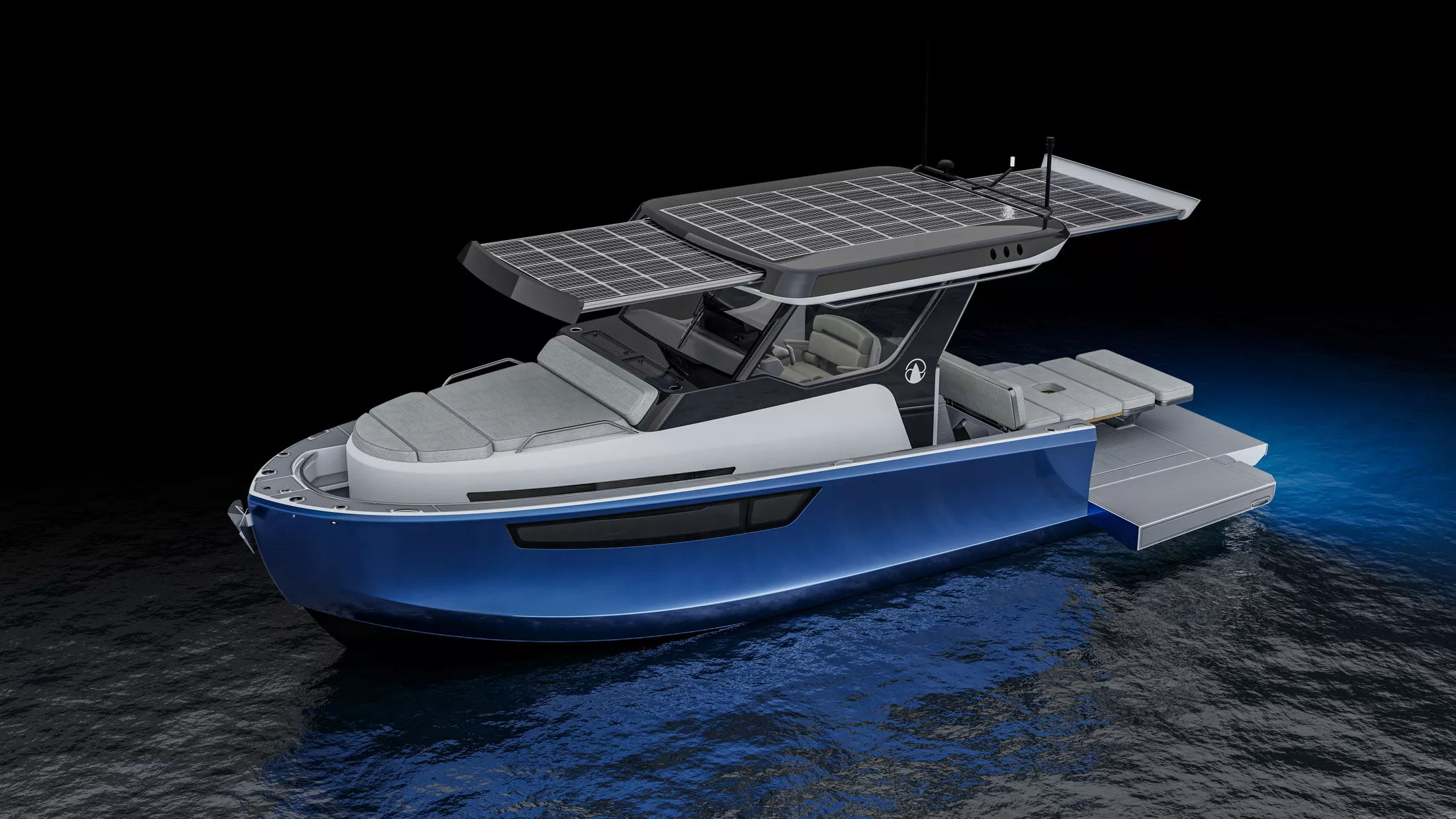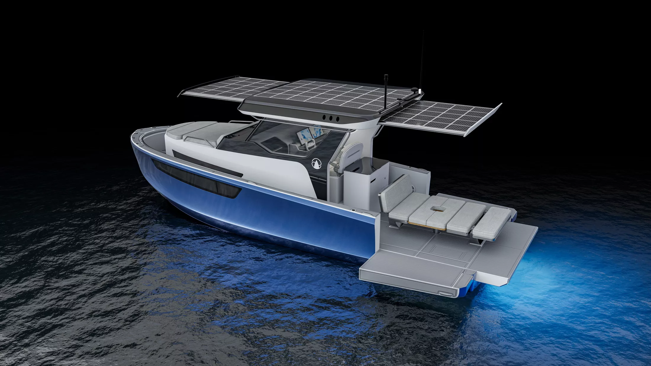 这款休闲船的异乎寻常之处在于其奇妙规划的用户界面、太阳能充电功用和永久的造型,为客户供给无与伦比的体会。可扩展的太阳能电池阵列可供给高达 2.8kW 的发电量。