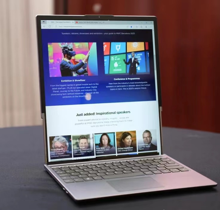 在 MWC 2023 展会上实机演示了上一年发布的卷轴屏笔记本。据悉,这款笔记本选用了可曲折的 OLED 面板,经过电机完成主动拉伸,内置软件会依据拉伸状况主动调整分辨率。